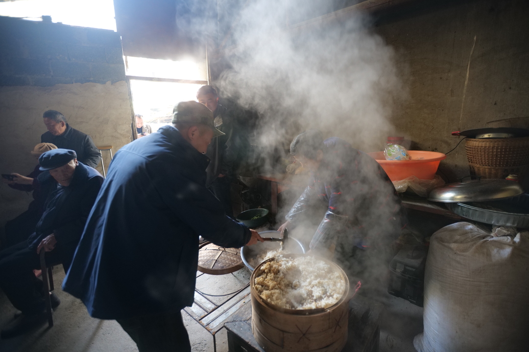 在这一天,古阳镇红星小区新寨组的向进德也在忙着准备年夜饭,向进德也是四世同堂的家庭,家中7口人,上有80多岁的老父亲,孙女是家里的团宠,家里的媳妇也孕育着新的下一代。向进德心里很是高兴,办起年夜饭也是麻利,中午12点,就办齐了一大桌饭菜。亲朋好友共聚一堂,举杯庆祝这美好的生活,共度春节。