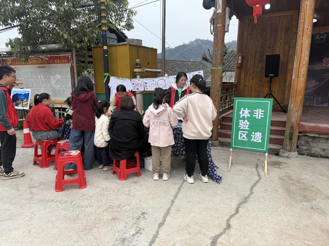 为了“留住客”,活动现场还设置了非遗体验区花草拓染、竹编技艺、推豆腐、舂辣子、打糍粑等传统技艺吸引了众多游客参与。游客们在非遗传承人的指导下,亲手体验制作过程,感受传统技艺的魅力。滚铁圈、陀螺等传统游戏区也围满了游客,大家在游戏中找回了童年的乐趣,现场气氛热烈而融洽。