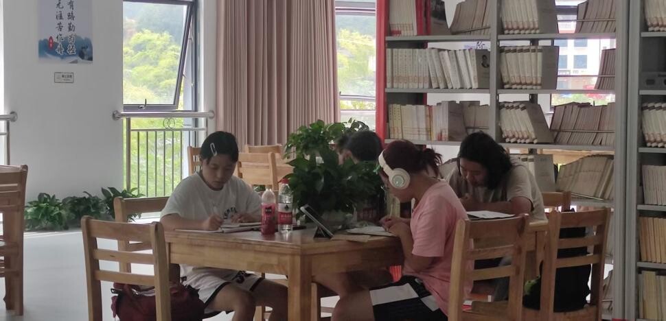 8月18日上午9点,古丈县图书馆就有不少读者,手持水杯和书籍及手提电脑,熟门熟路地走向自己常坐的位置,馆内温度适宜,与室外40℃的高温形成鲜明对比,一踏入便能感受到沁人心脾的凉爽。