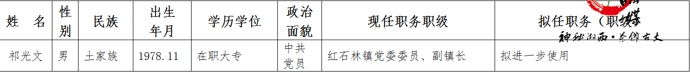 为了加强对干部选拔工作的监督,提高识别和任用干部的准确程度,现对县委常委会会议研究决定的下列拟任职人选进行任前公示: