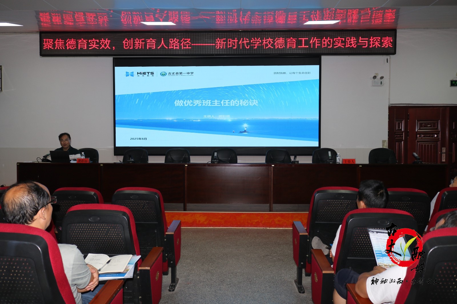 古丈融媒8月30日讯(通讯员 向圣云)为深入学习贯彻党的二十大精神,全面落实立德树人根本任务,推动新时代学校德育工作高质量发展,8月28日,海亮教育·古丈县第一中学召开“聚焦德育实效,创新育人路径”——2025年德育工作研讨会。本次研讨会由德育处主办,该校党政负责人,全体班主任、德育工作者、心理教师、安保宿管人员参会。