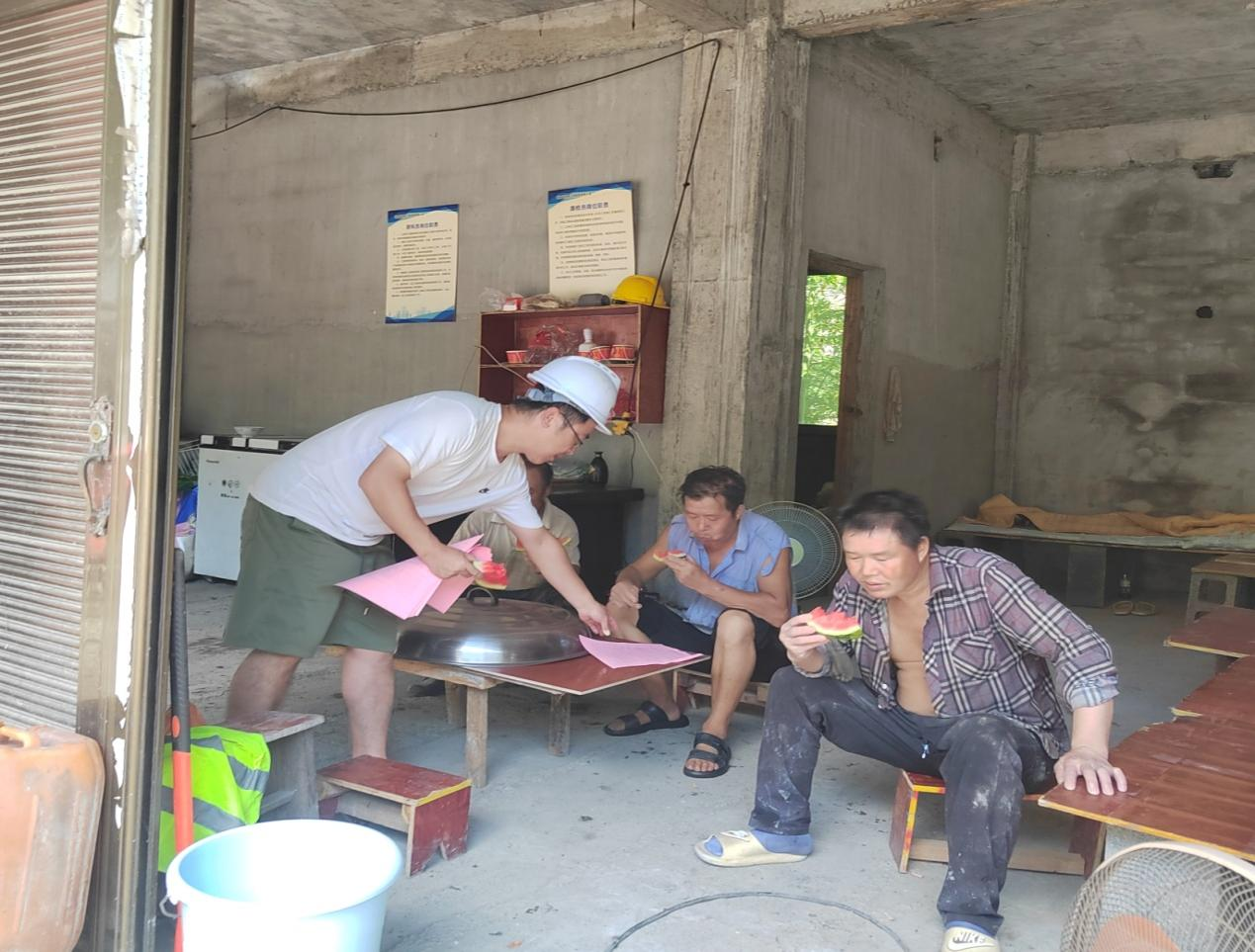 工作人员详细询问施工人员高温下的作业安排、休息环境及防暑物资配备情况,对他们不畏酷暑、坚守岗位推进公路建设表示衷心感谢,并送上矿泉水、西瓜、绿豆粗粮王、冰红茶、藿香正气水、人丹和应急包等防暑物资,缓解高温作业带来的不适。
