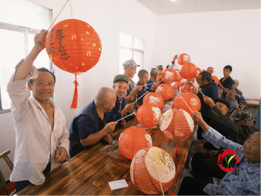 活动现场,暖意与笑声交织。镇干部与社工、志愿者分工协作,手把手教老人们制作简易灯笼,从撑展灯架、粘贴灯面,到安装挂绳、点亮灯源,耐心解答每一位老人的疑问。今年85岁的张爷爷手指虽有些颤抖,却在志愿者的协助下顺利完成作品,他捧着点亮的灯笼笑得格外灿烂:“活了这么大岁数,第一次自己动手做中秋灯笼!镇里和社工站的孩子陪着我们,还有老伙计们一起聊天,比在家里过节还热闹,心里比吃了蜜还甜!”