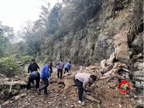 闻令而动,红色力量集结险情面前,时间就是效率。巡查队伍当即就地转化为抢险先锋队。他们一边设置临时路障和安全警示标志,防止次生事故发生;一边迅速通过手机、村组广播等方式,紧急召集附近的党员干部、村民小组长和志愿者。“观音山路垮了,能来的都带工具帮忙!”很快,一支由党员带头、群众参与的应急抢险队便带着铁锹、锄头、扫帚等工具,从四面八方汇聚到事发地点。