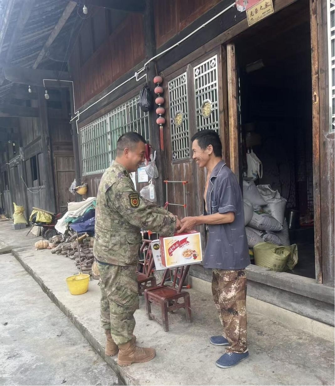 (工作人员走访慰问老兵施文亮)