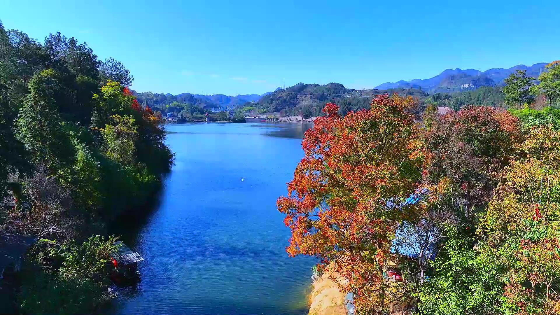 清晨时分,湖面蒸腾的水汽在低温作用下形成绵延云雾。当朝阳跃上山头,金辉洒向湖面,雾气被染成琥珀色,整片水域宛如瑶池仙境。当地村民撑一叶扁舟穿行雾中,橹声欸乃,惊起层层涟漪。远处凤卵岛上,乌桕树撑开火红的树冠,在晨光中与碧绿湖面相映成趣,呈现出“漫江碧透、层林尽染”的诗意景象。