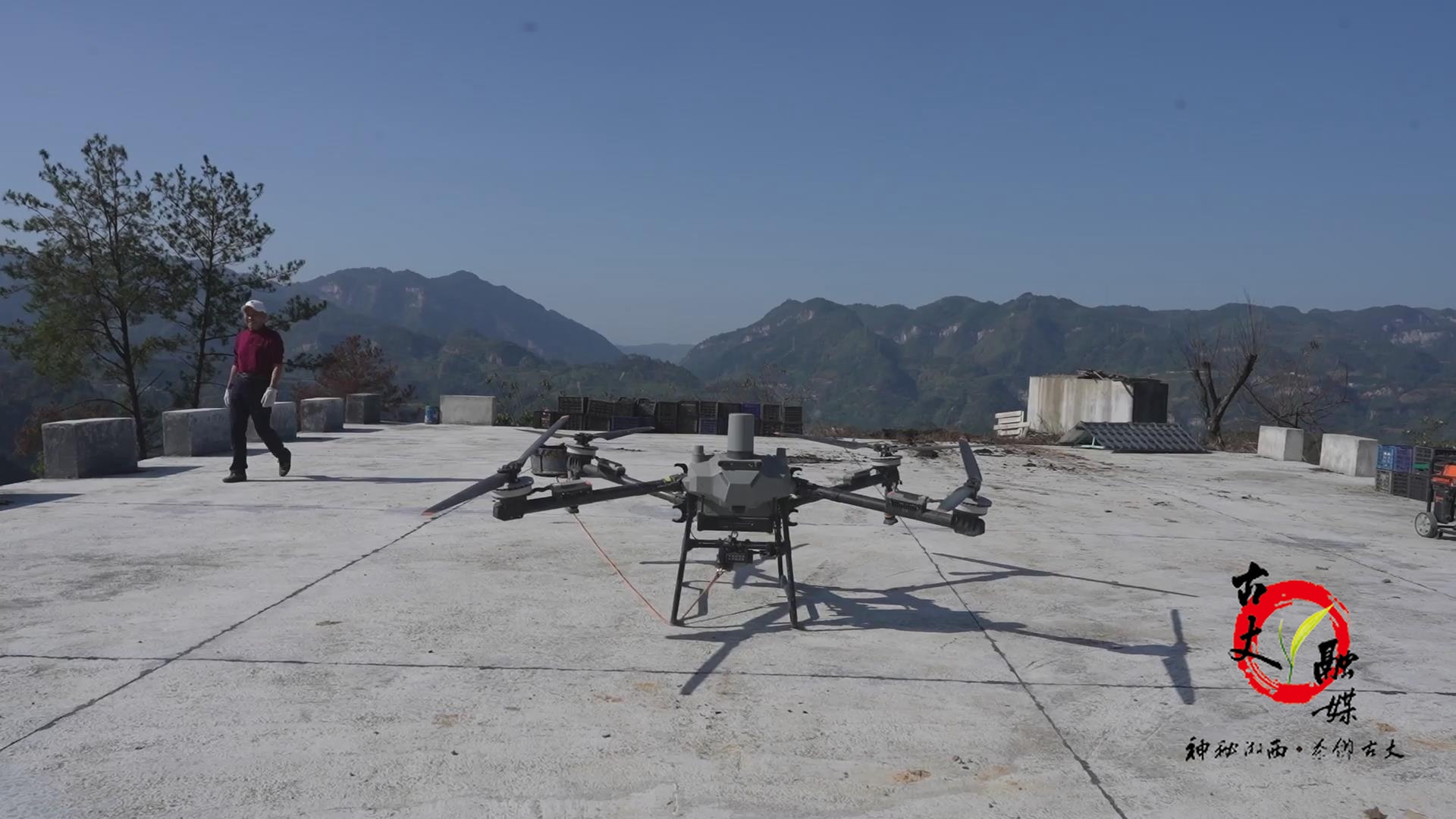 这片茶园位于海拔数百米的高山上,地势陡峭。往年此时,村民需肩挑背扛运送有机肥,不仅是繁重的体力活,也严重影响春耕效率。如今,这一传统劳作场景正被科技重新定义。在且茶村,鲁氏父子操作的无人机成为连接山脚与山顶的“空中走廊”。一袋近百斤的有机肥固定在无人机下方,仅用两三分钟就能运到以往需半小时以上的山顶地块。