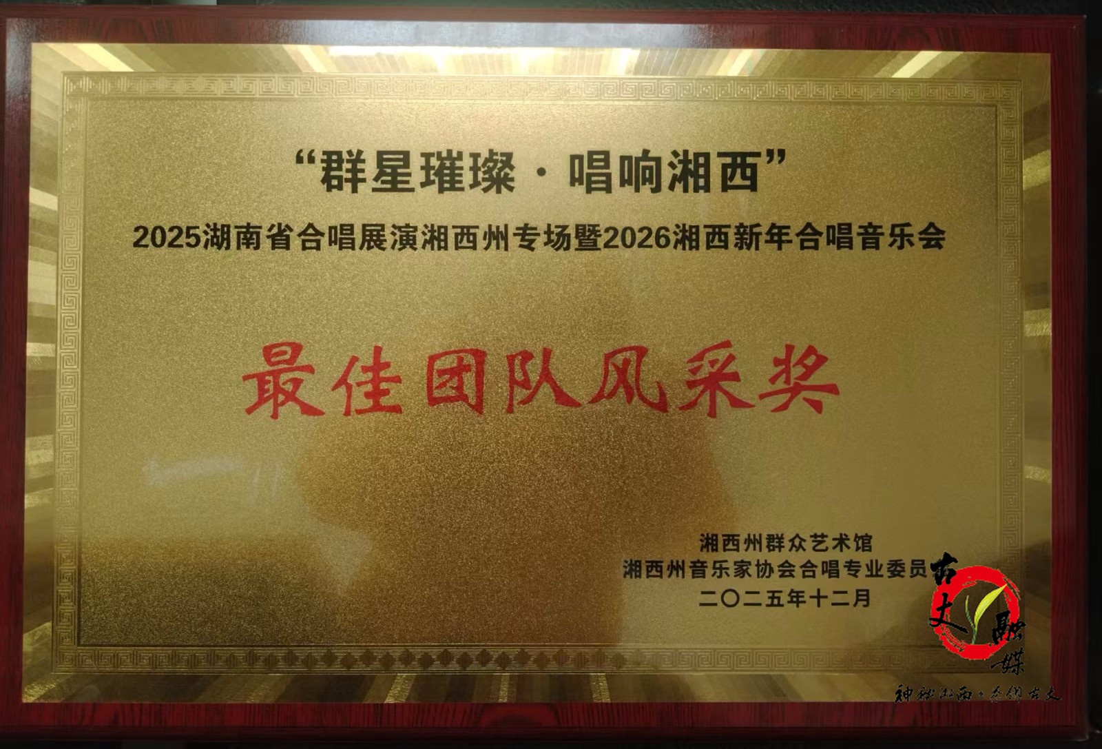 古丈融媒12月22日讯(通讯员 谢流春)12月21日,湘西州群众艺术馆内歌声嘹亮,星光璀璨。“群星璀璨,唱响湘西”2025湖南省合唱展演湘西州专场暨2026湘西新年合唱音乐会在这里举行。来自全州各个县市的14支优秀合唱队伍同台竞技,用歌声展现湘西音乐艺术的蓬勃生机。其中,古丈县少儿合唱团凭借出色表现荣获“最佳团队风采奖”,并成功取得代表湘西州参加省级合唱展演的资格。