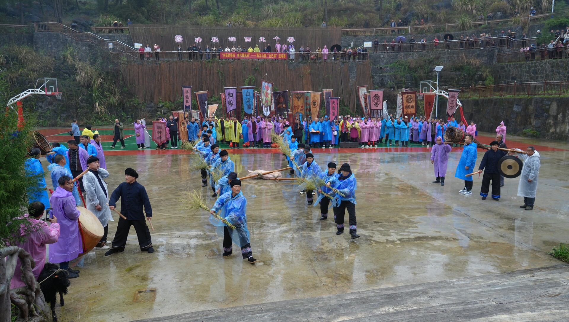 扫把舞的表演者手持扫把,以古朴刚健的动作挥洒腾挪,寓意扫除污秽、祈福纳祥,每一个舞步都藏着土家人的美好期许;梯玛队身着法衣、手持各式法器,踏着独特的罡步,伴着低沉的吟唱,仿佛与神灵隔空沟通,传递族人祈愿;毛古斯舞的表演者身披草裙、赤膊上阵,以原始质朴的装扮和动作,生动再现了土家先民狩猎、农耕的生活场景,作为 “土家族戏剧活化石”,一颦一笑、一招一式都引得现场观众连连叫好。