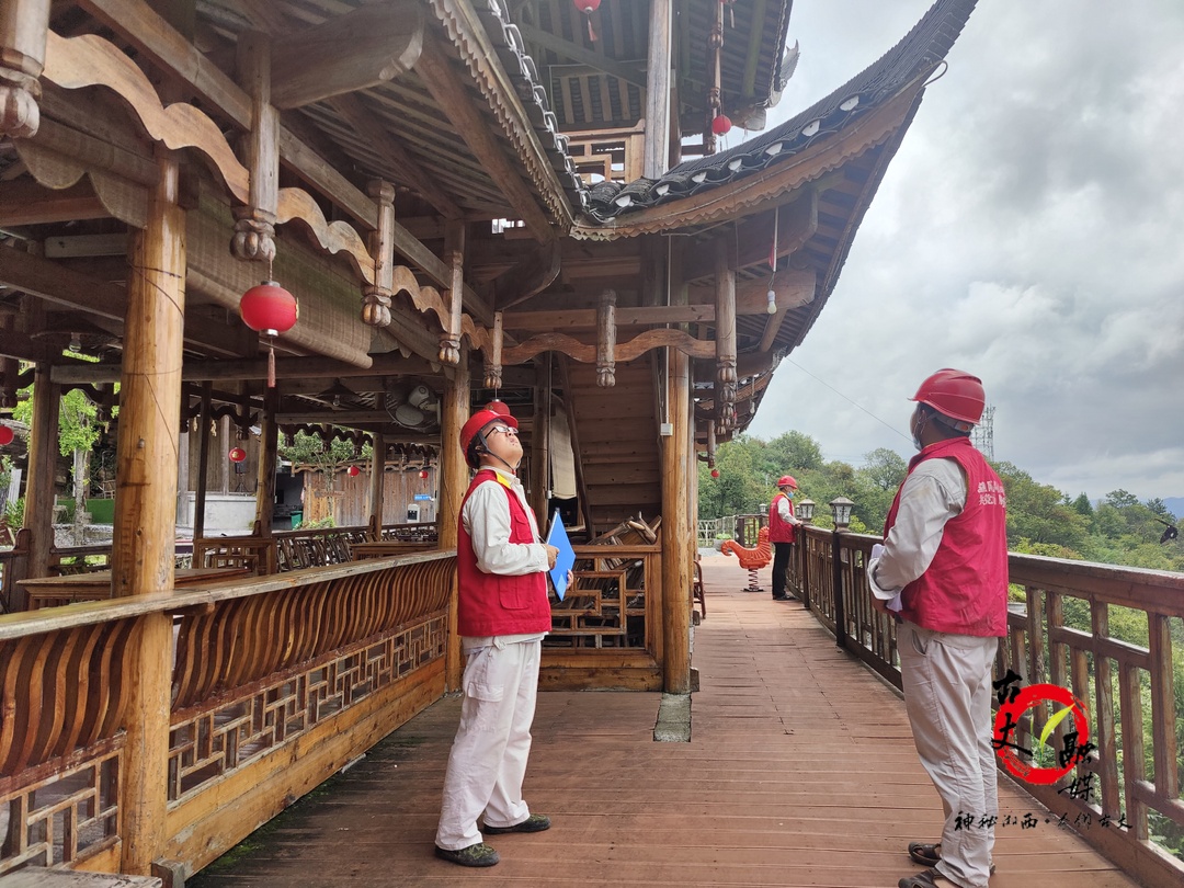 在古丈县红石林镇土家传统古村落坐龙峡村大寨组,该公司供电服务人员对高低压供电线路及设施设备进行综合检查,同时对居民线路设备,特别是民宿、木质房屋等客户的配电柜、开关箱、下户线等进行全面检查,排查用电隐患,并宣传安全用电常识,现场受理业务咨询,对存在用电隐患的下发隐患整改通知书,责令限期整改。
