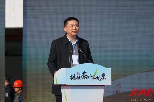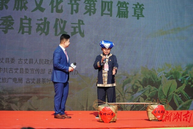为了表达对各界帮扶的感恩,对茶旅产业振兴的美好期待,活动现场设计了一段特别的“挑担茶叶上北京”环节——第十三届全国人大代表、古丈县默戎镇牛角山村党总支书记龙献文挑着一担饱含深情的茶叶登上舞台,表达对党的政策的礼赞,对各界帮扶的感激,也寄托着古丈茶产业依托高铁走出湘西,走向更宽广市场的决心。