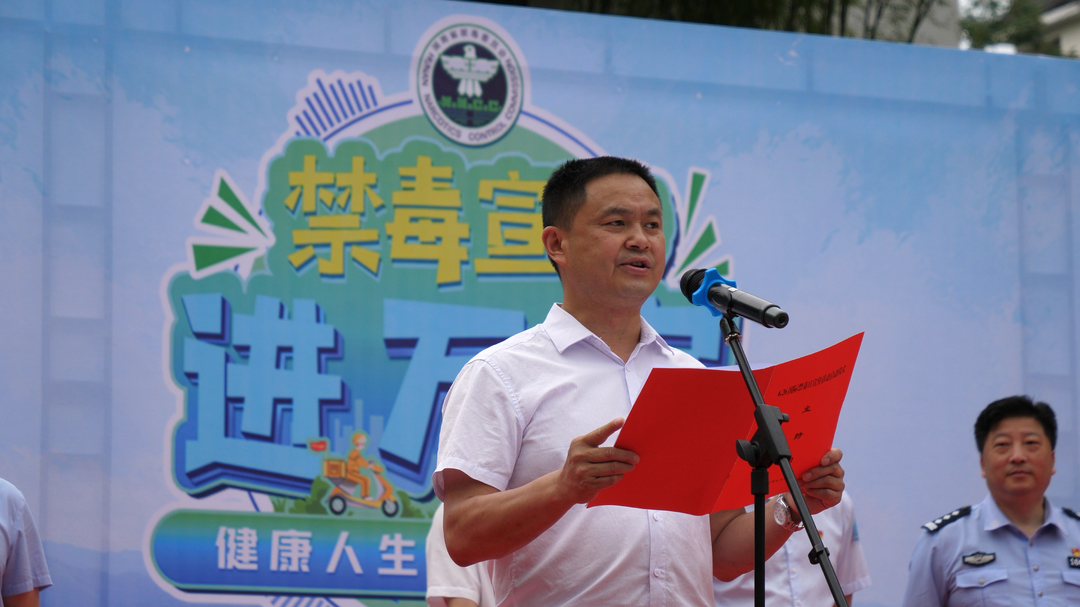 古丈融媒6月16日讯(记者 郑湘)在第35个“6·26”国际禁毒日到来之际,为浓厚全民禁毒氛围,充分发动人民群众积极参与禁毒斗争,深入推进“全民禁毒宣传月”活动,在县城内掀起新一轮的禁毒宣传教育高潮。6月16日,古丈县禁毒委员会办公室与禁毒成员单位联合举办“禁毒宣传进万家”暨2022年“6.26”主题宣传活动启动仪式。县禁毒委主任、县委副书记、县长陈瑞宣布活动正式启动,县禁毒委副主任、县委常委、常务副县长刘学书,县禁毒委副主任、副县长、县公安局局长李剑出席启动仪式,县禁毒委常务副主任、县委常委、县委政法委书记周大钊主持启动仪式