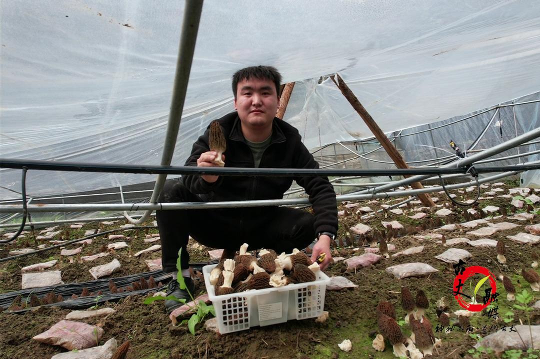 向吉祥不甘心自己的努力付之东流,清扫完大棚上的积雪后,为避免大棚内的恒温环境被破坏,阻碍菌种的正常生长进而影响出菌率,他索性在大棚外搭了个简易的棚子,直接将家搬到了生产基地,当夜晚降临时,他便守护在这些珍贵的羊肚菌旁。经过精心管护,羊肚菌喜迎第一轮丰收,亩产量达到300斤。有了这次小试牛刀,向吉祥决定扩大规模,动员村民一起参与羊肚菌种植。